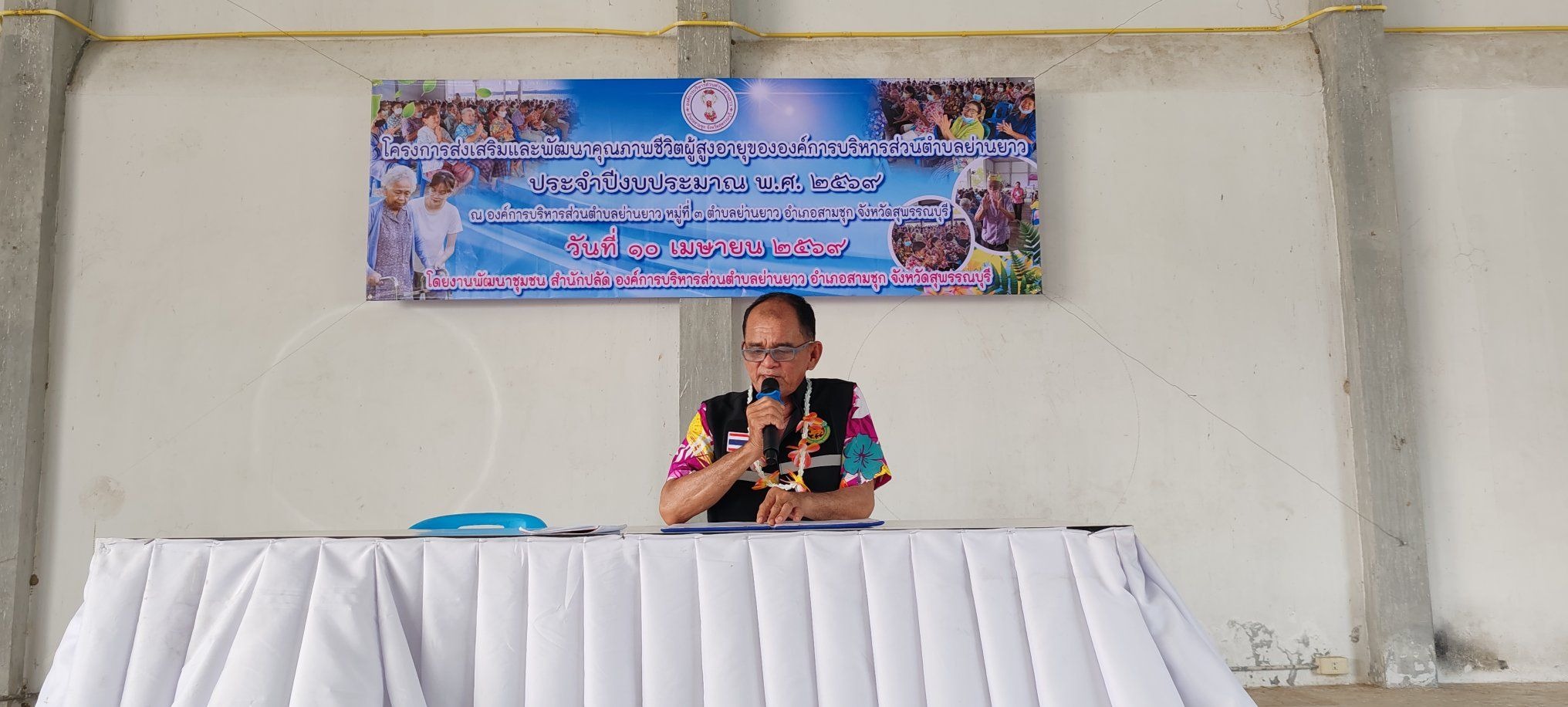 นายประณต หงษ์สถิตธรรม นายกองค์การบริหารส่วนตำบลย่านยาว เปิดโครงการส่งเสริมและพัฒนาคุณภาพชีวิตผู้สูงอายุ ขององค์การบริหารส่วนตำบลย่านยาว ประจำปีงบประมาณ 2569 พร้อมด้วย รองนายก และ เลขานุการ ส อบต และผู้ใหญ่บ้าน หน่วยราชการ พนักงาน เข้าร่วมโครงการ พร้อมให้ความรู้ โดยพัฒนาสังคมและความมั่นคงของมนุษย์ (พม)